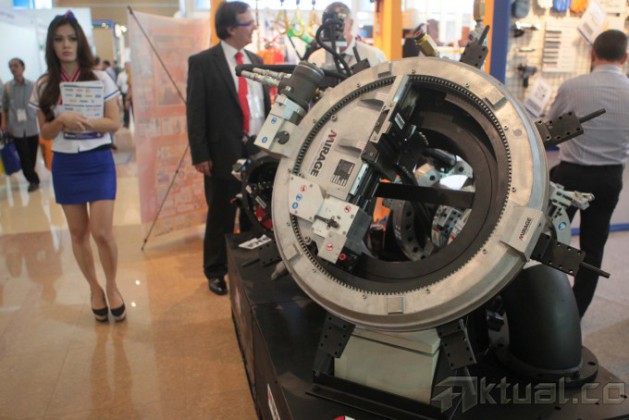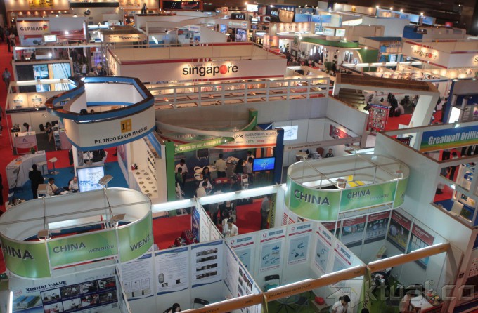 Pengunjung melihat beberapa produk yang ditawarkan 777 perusahaan dari 44 negara yang berpartisipasi dalam The 9th International Oil and Gas Exploration, pameran produksi dan pengilangan yang diselenggarakan oleh Pamerindo Indonesia, di JIExpo, Kemayoran, Jakarta, Kamis (14/11/2013). Pameran yang berlangsung pada 13-15 November 2013 ini menjadi sarana masyarakat industri dan para pemangku kepentingan bisnis di Indonesia untuk dapat mengikuti perkembangan industri migas di negara lain. Aktual/Tino Oktaviano