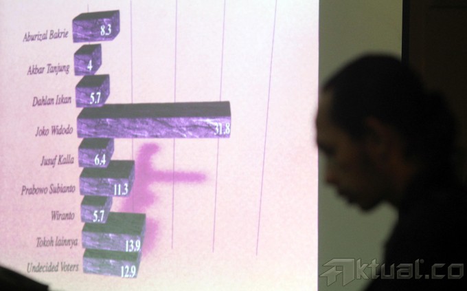 Peneliti Lembaga Ilmu Pengetahuan Indonesia (LIPI) R. Siti Zuhro (kanan) bersama Pengamat Politik Universitas Paramadina Herdi Sahrasad (kiri) menjadi pembicara dalam diskusi hasil survei Freedom Foundation di Jakarta, Minggu (9/3/2014). Salah satu hasil temuan survei Freedom Foundation pada tanggal 27 Januari hingga 26 Februari 2014 tentang elektabilitas capres pada pemilu 2014 yakni Joko Widodo (31,8 persen), Prabowo Subianto (11,3 persen), Aburizal Bakrie (8,3 persen), Jusuf Kalla (6,4 persen), Dahlan Iskan (5,7 persen), Wiranto (5,7 persen) dan Akbar Tanjung (4 persen). Aktual/Tino Oktaviano