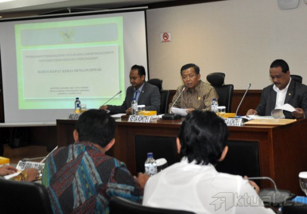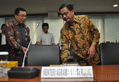 Menteri Agraria dan Tata Ruang (ATR)/Kepala Badan Pertanahan Nasional (BPN), Ferry Mursyidan Baldan mengikuti rapat dengan Komite I DPD RI di Komplek Nusantara, Senayan, Jakarta, Rabu (15/4/2015). Rapat kerja tersebut membahas mengenai tata ruang, hak guna usaha bangunan dan NJOP harga tanah. AKTUAL/JUNAIDI MAHBUB