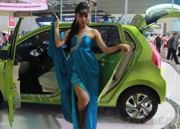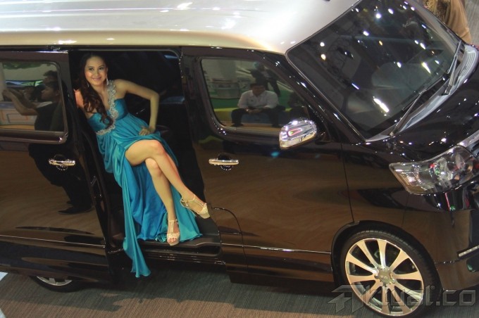 Seorang model berdiri disamping mobil Mercedes A 250 Sport yang dipamerkan di Indonesia International Motor Show (IIMS) ke-21 di Ji Expo Kemayoran, Jakarta, Senin (23/9/2013). Pesona para perempuan ini menambah keindahan mobil-mobil yang dipamerkan dalam ajang IIMS 2013. Aktual/Tino Oktaviano
