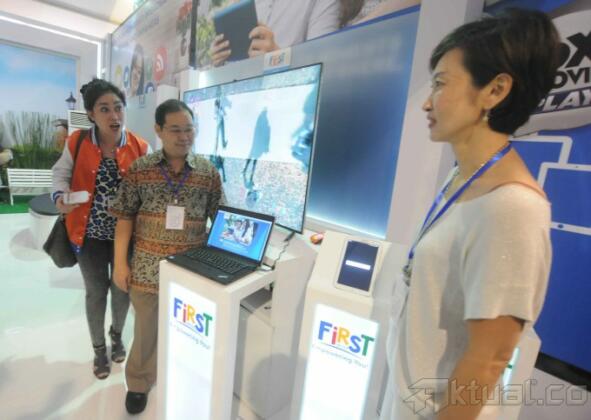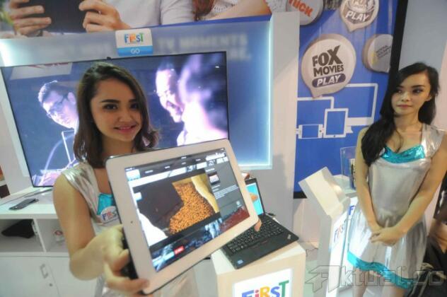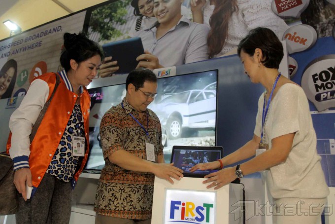 Dari (kiri) CMO Bolt Lirya, CEO Linknet Richard Kartawijaya, CMO Linknet Iris Wee hadir dalam peluncuran “Kolaborasi First Media dengan Mobile Broadband Bolt 4G LTE” di JIXPO Kemayoran, Jakarta Pusat, Jumat (28/2/2014). Dari kerjasama tersebut Firstmedia menghadirkan triple play bundle, yang terdiri dari home cable, first media go dan bolt 4g lte. Aktual/Tino Oktaviano