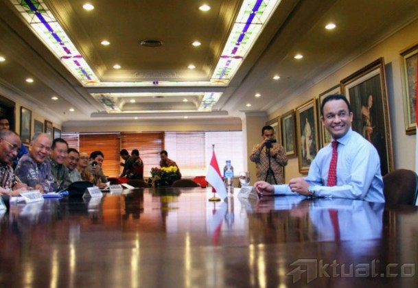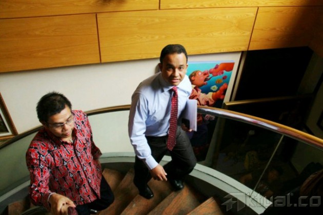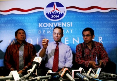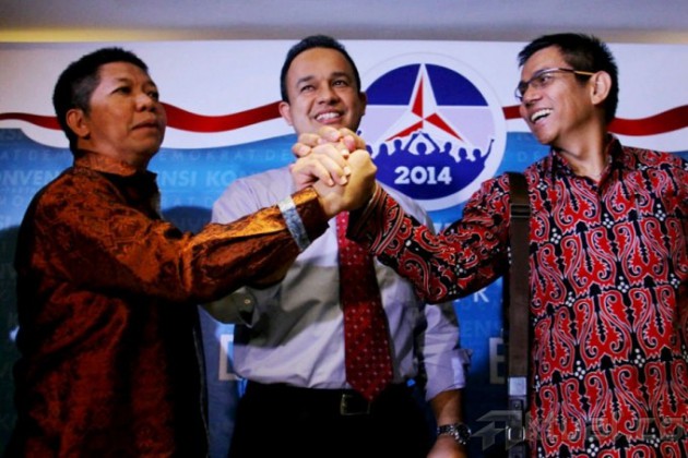 Anies Baswedan (tengah) berbincang dengan anggota Komite Konvensi Calon Presiden Partai Demokrat di Wisma Kodel, Jalan Rasuna Sahid, Jakarta, Selasa (27/8). Anies belum mau menyatakan kesiapannya mengikuti konvensi capres Partai Demokrat. Dalam kesempatan kali ini Anies lebih ingin mengetahui dulu mekanisme dan aturan konvensi. Aktual/Oke Dwi Atmaja