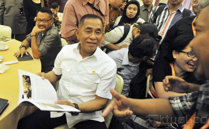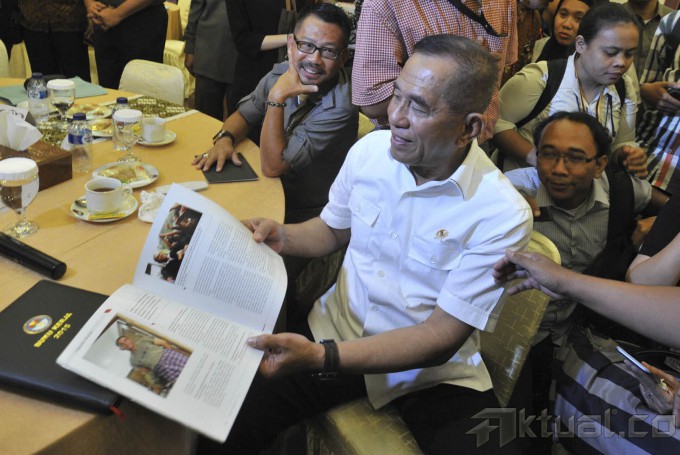Menteri Pertahanan Ryamizard Ryacudu berbincang dengan sejumlah wartawan saat silaturahmi di Gedung Kementerian Pertahanan, Jakarta, Selasa (26/5/2015). Dalam kesempatan ini Ryamizard menjelaskan hasil kunjungannya ke Amerika Serikat dan berbagai bentuk kerjasama di bidang militer. AKTUAL/TINO OKTAVIANO
