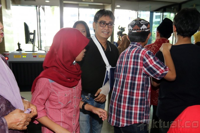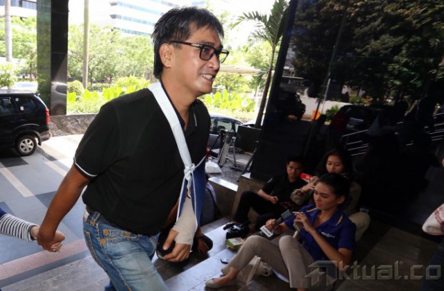 Adik Andi Alifian Mallarangeng, Andi Zulkarnaen Anwar alias Choel Mallarangeng menjenguk kakaknya yang mendekam di Rumah Tahanan Komisi Pemberantasan Korupsi (KPK), Kamis (29/5/2015). Tampak tangan kirinya tampak mengenakan gips. Menurut Choel, tangannya patah akibat jatuh saat bersepeda. Andi merupakan terdakwa kasus dugaan korupsi pembangunan sarana dan prasarana pusat pendidikan dan pelatihan olahraga Hambalang. Aktual/Tino Oktaviano