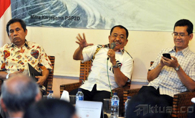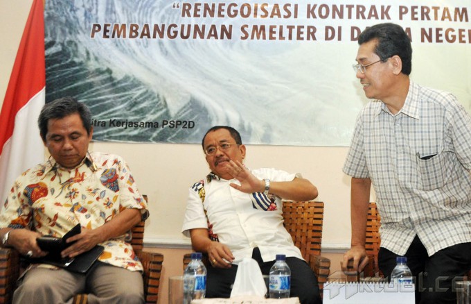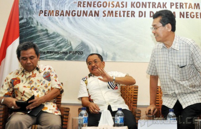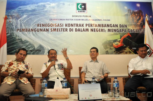 Staff Khusus Menteri Energi dan Sumber Daya Mineral (ESDM) Muhammad Said Didu (tengah) Ketua Komis VII DPR Kardaya (kiri) dan Pengamat Energi Marwan Batubara saat diskusi publik yang digelar KAHMI dan Departemen Ristek ESDM di Kahmi Center, Jakarta, Selasa (3/3/2015). Diskusi tersebut membahas isu pembangunan Smelter dengan mengangkat tema “Renegosiasi Kontrak Pertambangan dan Pembanguna Smelter di Dalam Negeri : Mengapa Gagal?” AKTUAL/JUNAIDI MAHBUB