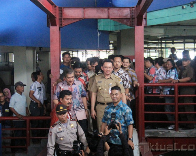 Gubenur DKI Jakarta Basuki Tjahja Purnama (Ahok) mendatangi pasar Blok G yang berada di Tanah Abang, Jakarta Pusat, Rabu (15/4/2015). Ahok beberapa bulan yang lalu mengeluarkan pernyataan bahwa Pasar Blok G akan di hancurkan kini pernyataan Ahok berubah, bahwa Pasar Blok G akan dipercantik dan akan di buat ramai pengunjung. AKTUAL/MUNZIR