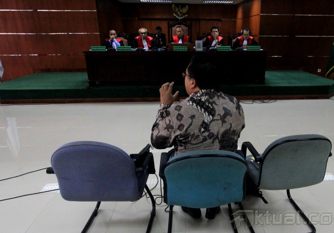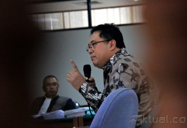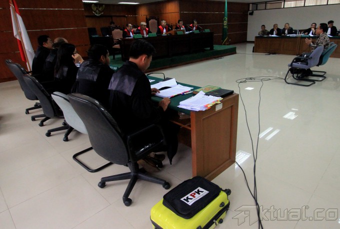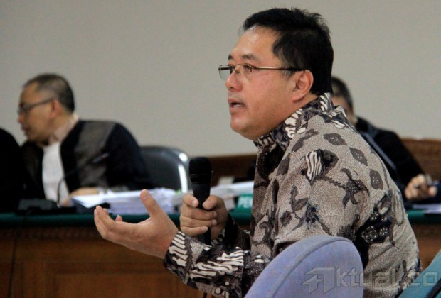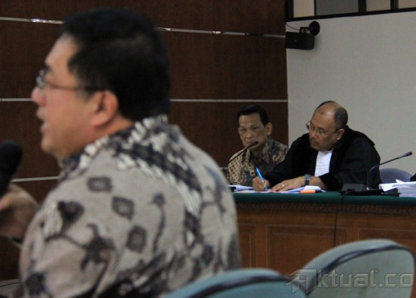 Terdakwa korupsi alat Simulator SIM Budi Susanto, memberikan keterangan kepada Jaksa Penuntut Umum saat sidang lanjutan korupsi alat Simulator SIM dengan terdakwa Brigjen Didik Purnomo di Pengadilan Tindak Pidana Korupsi (Tipikor), Jalan HR Rasuna Said, Jakarta Selatan, Kamis (12/2/2015). Didik Purnomo didakwa melakukan tindak korupsi terkait pengadaan simulator uji klinik pengemudi roda dua (R2) dan roda empat (R4) tahun anggaran 2011. Didik didakwa melakukan korupsi sebesar Rp121 miliar. AKTUAL/MUNZIR