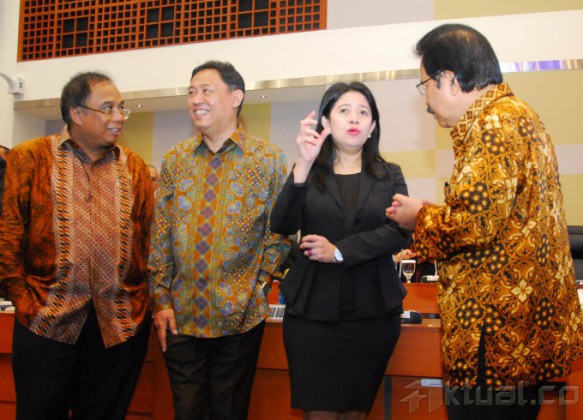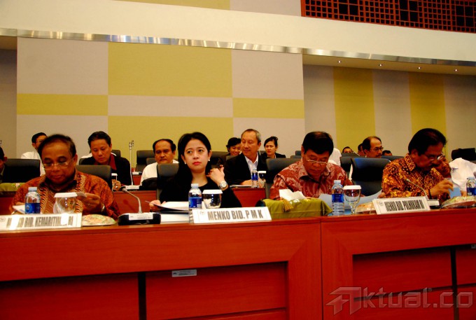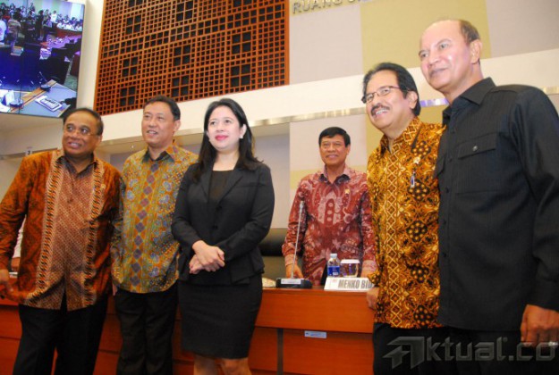 Empat Menteri Koordinator (Menko) di dalam pemerintahan Presiden Joko Widodo mengikuti rapat kerja dengan Badan Anggaran (Banggar) DPR RI. Agendanya membahas Rencana Kerja Anggaran Kementerian Lembaga (RKAKL) 2016 di Komplek Parlemen, Senayan, Jakarta, Rabu (10/6/2015). Keempat Menko tersebut adalah Menko Perekonomian Sofyan Djalil, Menko Pembangunan Manusia dan Kebudayaan Puan Maharani, Menko Polhukam Tedjo Edhi Purdijatno, dan Menko Maritim Indroyono Soesilo. AKTUAL/JUNAIDI MAHBUB
