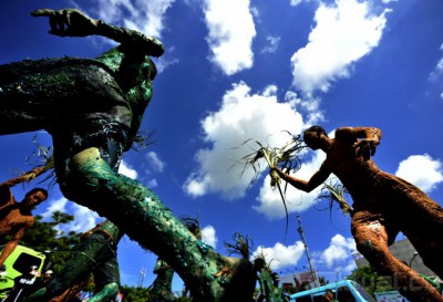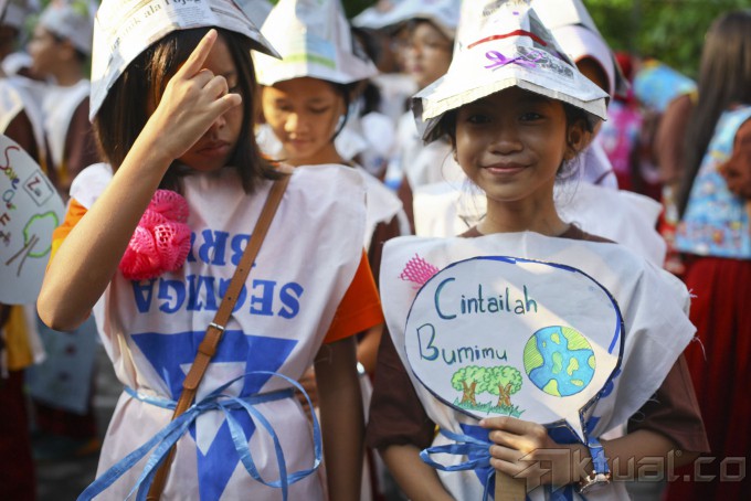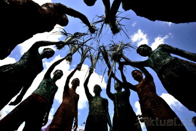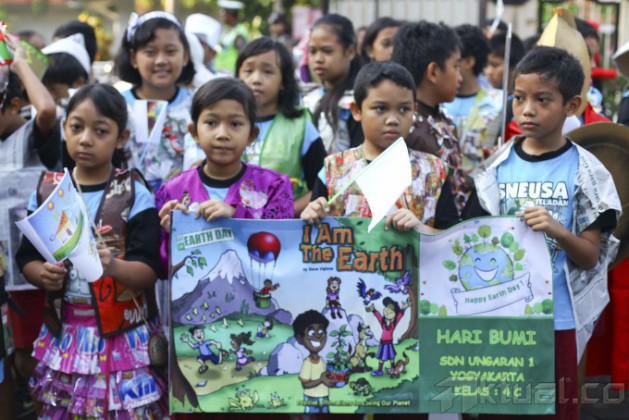 Mahasiswa Universitas Islam Negeri (UIN) Makassar melakukan aksi teatrikal saat memperingati Hari Bumi International (Earth Day) di Makassar, Sulawesi Selatan, Rabu (22/4). Dalam aksinya, mereka mengajak seluruh manusia untuk menjaga kelestarian bumi. ANTARA FOTO/Yusran Uccang