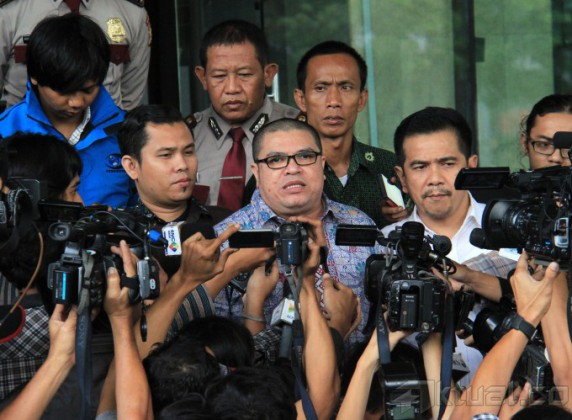 Pengacara Komjen Pol Budi Gunawan, Razman Arief Nasution datangi degung KPK, Jalan HR Rasuna Said, Jakarta Selatan, Jumat (13/2/2015). Kedatangan Razman ke KPK, untuk menyarankan agar Pimpinan KPK tidak selalu mempublikasikan situasi dan kondisi yang dialami, khususnya terkait masalah teror. AKTUAL/MUNZIR