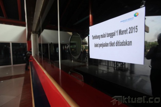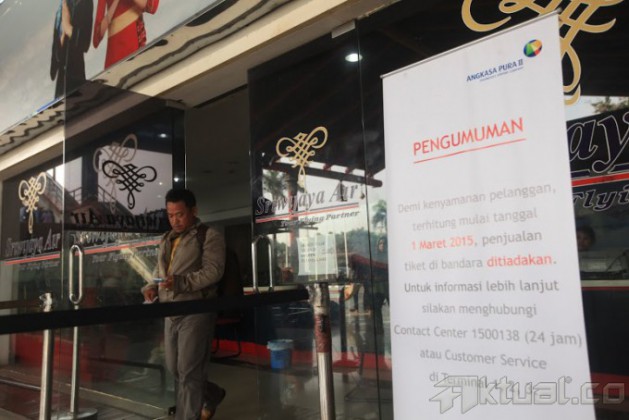 Calon penumpang melakukan transaksi di loket pembelian tiket Bandara Soekarno Hatta, Kamis (26/2/2015). Angkasa Pura II akan menutup loket di Bandara terhitung 1 Maret 2015. Penutupan loket penjualan tiket ini merupakan tindak lanjut dari surat edaran Menteri Perhubungan tentang Peningkatan Pelayanan Publik di Bandar Udara Seluruh Indonesia, sebagai upaya untuk memberikan pelayanan yang lebih optimal bagi para pengguna jasa transportasi udara. AKTUAL/JUNAIDI MAHBUB