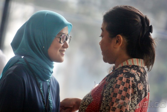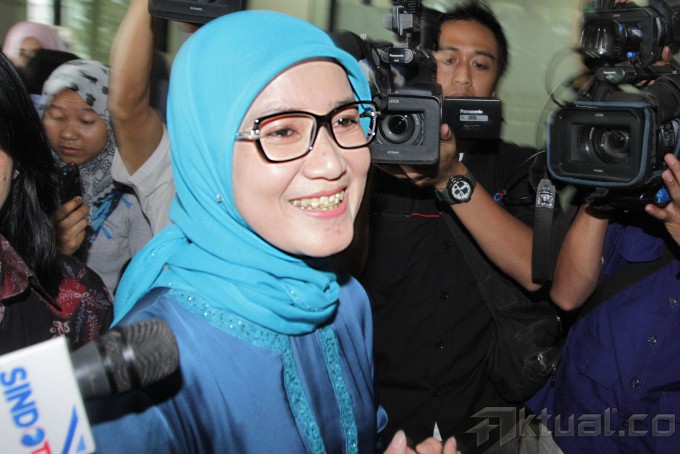 Anggota DPR RI yang juga Calon Bupati terpilih Kabupaten Lebak, Banten, Iti Octavia Jayabaya (kiri) saat tiba mendatangi Gedung KPK, Jakarta, Senin (25/11/2013). Bupati Lebak tersebut diperiksa sebagai saksi terkait kasus tindak pidana korupsi suap dalam penanganan sengketa Pilkada di Mahkamah Konstitusi. Aktual/Tino Oktaviano