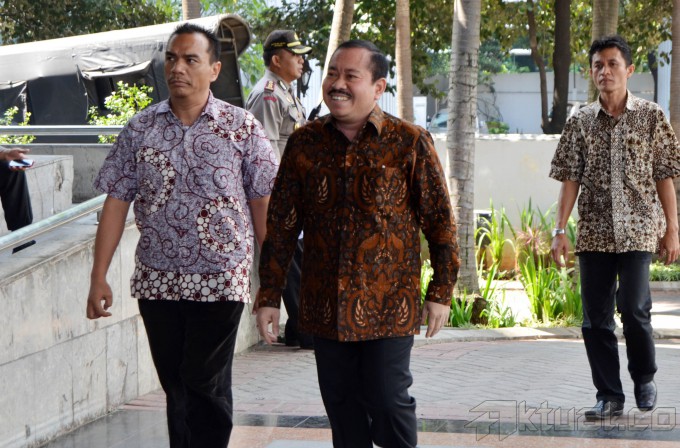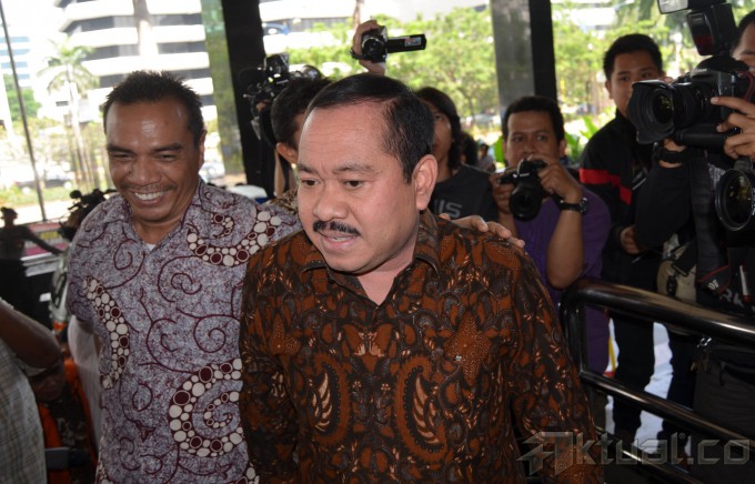Mantan Bendahara Umum Partai Demokrat, Sartono Hutomo yang juga sepupu SBY berjalan saat akan menjalani pemeriksaan di gedung Komisi Pemberantasan Korupsi (KPK), Jakarta, Selasa (4/3/2014). Sartono akan dimintai keterangannya sebagai saksi dalam perkara dugaan penerimaan hadiah pembangunan proyek Pusdiklat Hambalang untuk tersangka AU (Anas Urbaningrum). Aktual/Tino Oktaviano