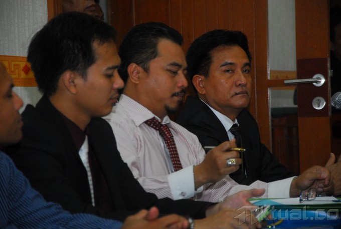 Pengadilan Negeri (PN) Jakarta Barat menolak gugatan kubu Aburizal Bakrie (Ical) terkait dualisme kepengurusan DPP Prtai Golkar. Sidang dengan agenda putusan sela tersebut digelar di Ruang sidang utama PN Jakarta Barat, Selasa (24/2/2015) dipimpin oleh Hakim Ketua Oloan Harianja dan anggota, Mochammad Muchlis serta PPH Sitorus. Dalam sidang kali ini kubu Agung Laksono diwakili oleh kuasa hukumnya Victor Nadapdap, sedangkan kubu Ical diwakili oleh kuasa hukumnya yaitu Yusril Izha Mahendra. AKTUAL/JUNAIDI MAHBUB