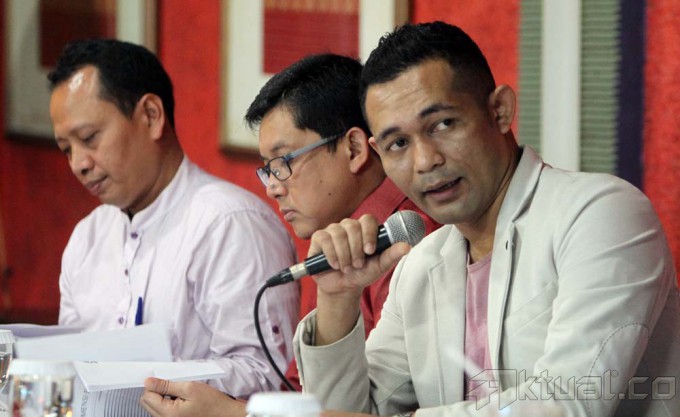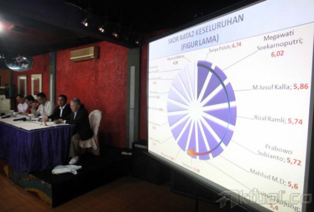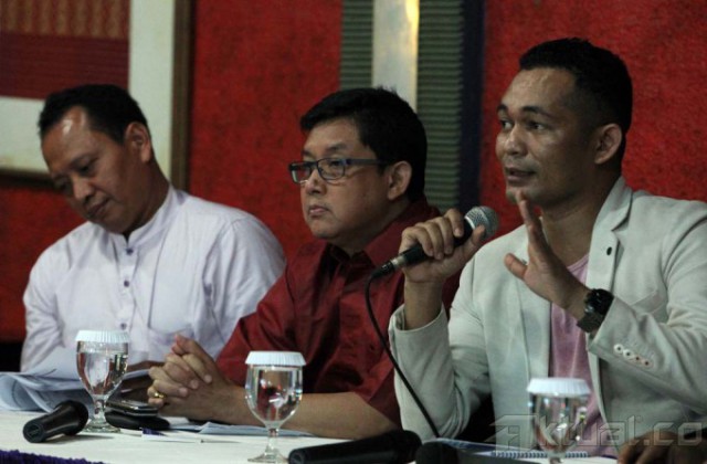 Direktur Lembaga Pemilih Indonesia (LPI) Boni Hargens (kanan), Capres Konvensi Partai Demokrat Ali Masykur Musa (tengah) dan Direktur Institute Public Indonesia Karyono Wibowo (kiri) saat penyampaian kajian dan analisa politik pada pemilu 2014 di Jakarta, Minggu (19/1/2014). Menurut analisa LPI, di tahun 2014 ini timbul tiga blok kekuatan terbesar, yaitu blok Jokowi, Blok Prabowo dan Blok X yang belum diketahui siapa sosok dibelakangnya. Aktual/Tino Oktaviano
