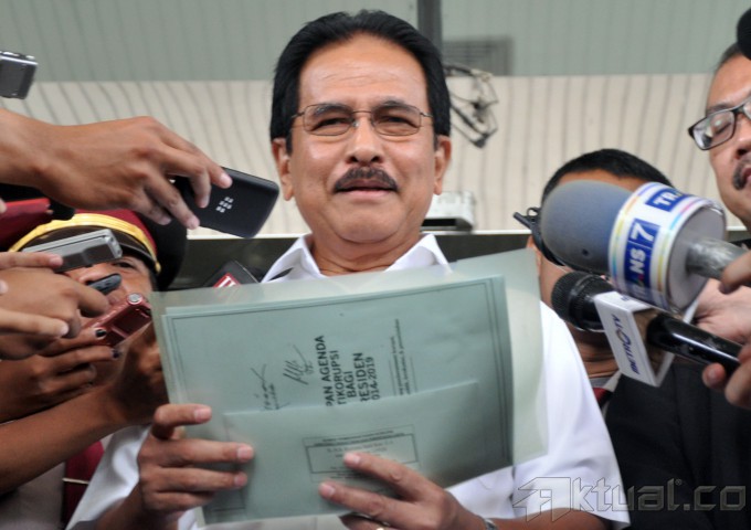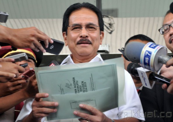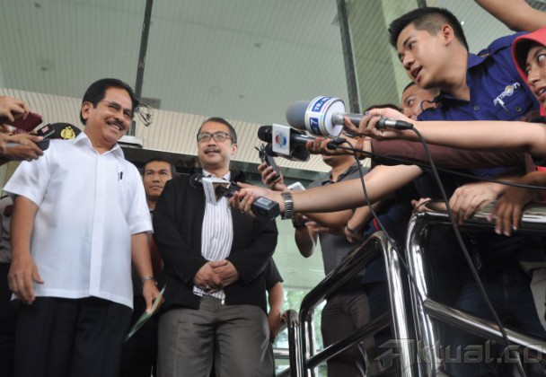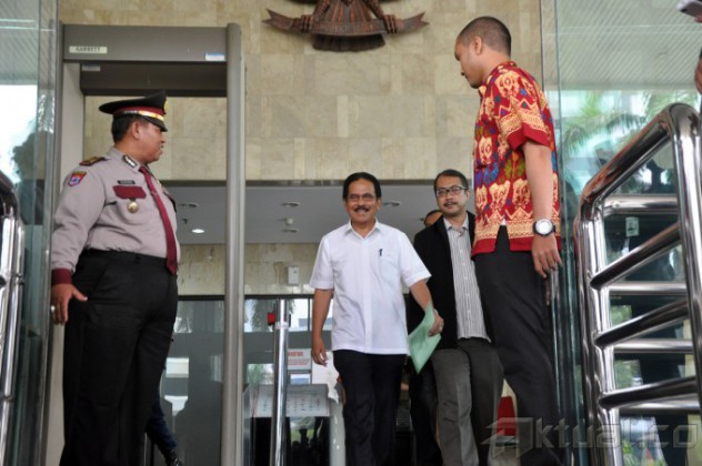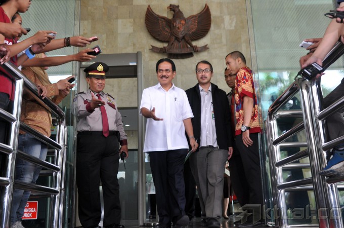 Menteri Koordinator Bidang Perekonomian, Sofyan Djalil,  saat keluar dari Gedung Komisi Pemberantasan Korupsi (KPK), Jakarta, Kamis (6/11/2014). Kedatangannya untuk melaporkan harta kekayaannya kepada KPK. Sofyan mengaku memiliki harta kekayaan lebih dari Rp10 miliar. AKTUAL/JUNAIDI MAHBUB