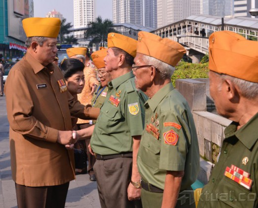 Presiden SBY dan Ibu Ani menghadiri peringatan Hari Veteran Nasional 2014 di Balai Sarbini, Jakarta, Senin (11/82014) pagi. Aktual/Cahyo/presidenri.go.id