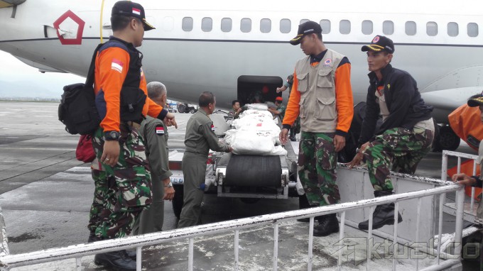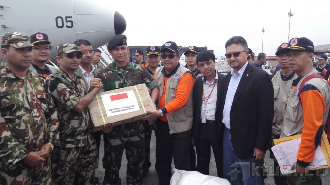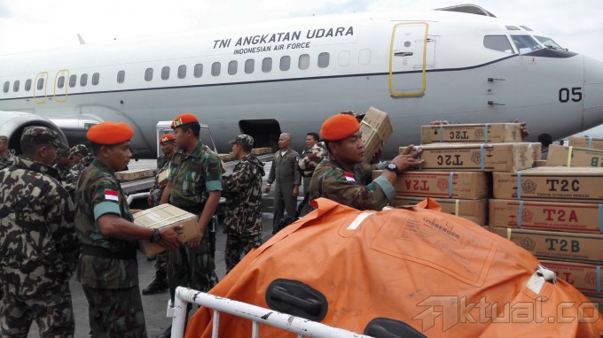 Sebanyak 1,6 ton makanan siap saji bantuan TNI untuk korban gempa bumi Nepal tiba di Bandara Internasional Tribhuvan, Kathmandu, Nepal, Kamis (30/4/2015). Selain membawa bantuan Indonesia juga mengirimkan 69 orang Tim Kemanusiaan dan Evakuasi serta bantuan kemanusiaan dari PMI, BNPB, Kemenkes dan Kemenlu. AKTUAL/PUSPEN TNI