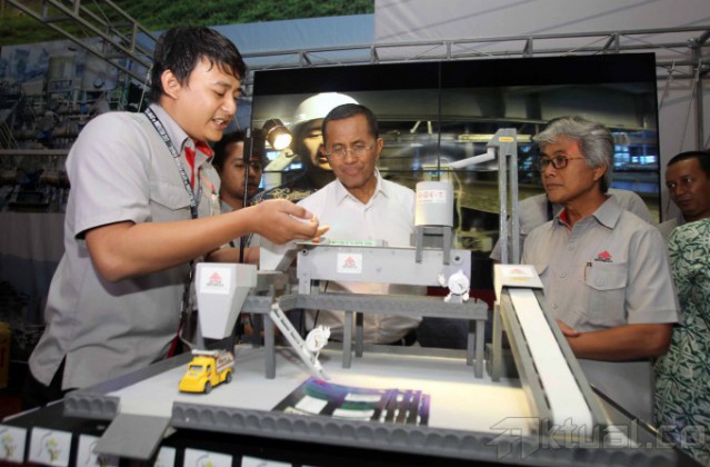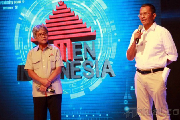 Menneg BUMN, Dahlan Iskan, didampingi Dirut PT Semen Indonesia (persero) Tbk, Dwi Soetjipto, saat meluncurkan wadah baru yang bernama Semen Indonesia Center Of The Camps (SICC) di Balai Kartini, Jakarta, Kamis (28/8/2014). SICC berupaya untuk mengembangkan seluruh potensi yang dimiliki, tidak hanya bisnis semen, melainkan untuk mencetak sumber daya manusia di bidang persemenan termasuk rancang bangunnya. Aktual/Tino Oktaviano