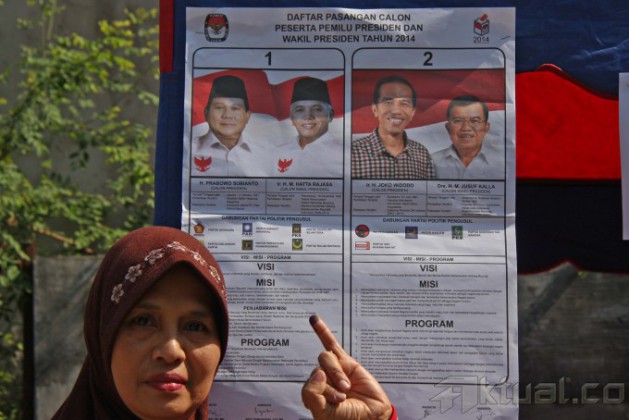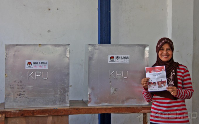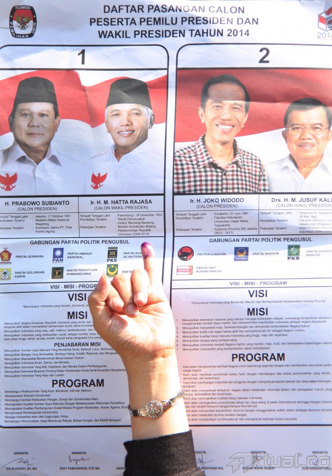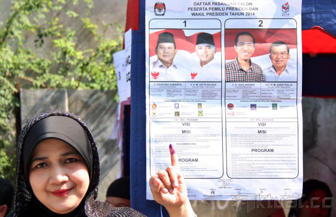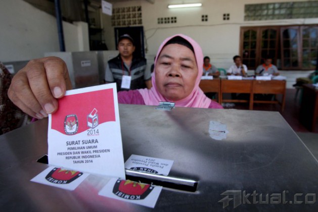 Warga saat mengikuti pemungutan suara ulang Pilpres 2014 di TPS 03 Kelurahan Cideng, Kecamatan Gambir, Jakarta Pusat, Sabtu (19/7/2014). Pencoblosan ulang ini diadakan karena sebelumnya banyak ditemukan pemilih dari daerah yang tetap diizinkan melakukan pemungutan suara meski tak memiliki surat A5. Aktual/Tino Oktaviano