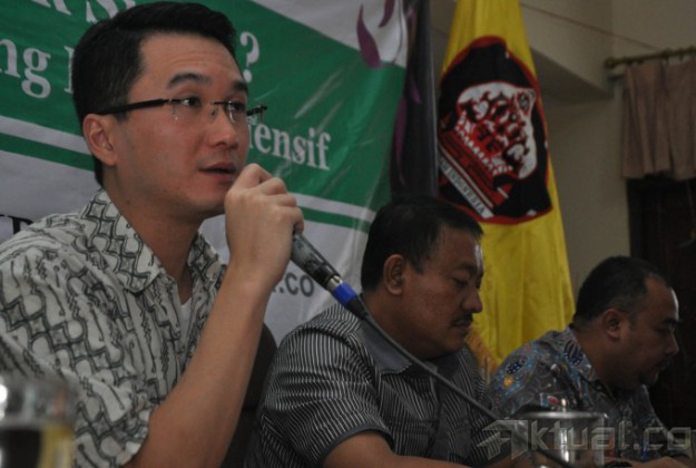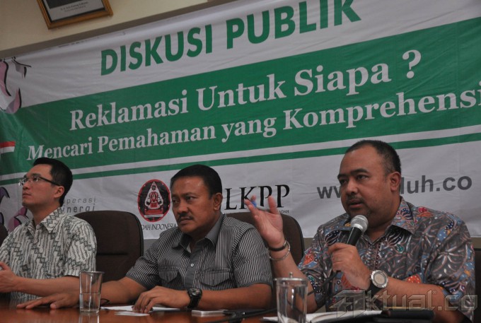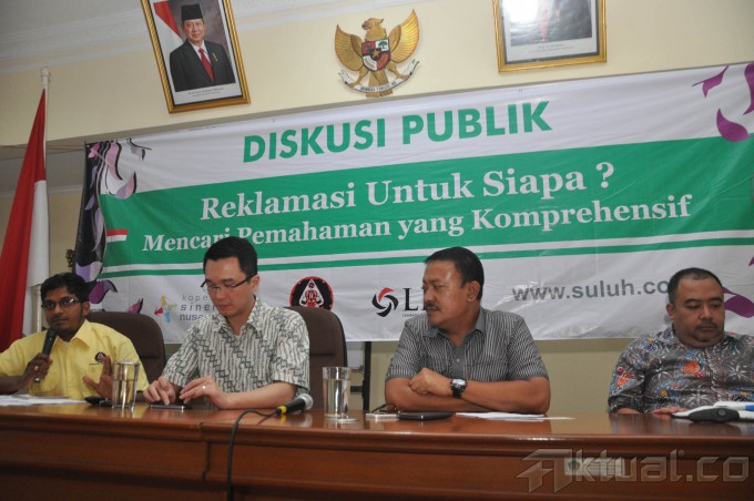 Dari kiri ke kanan, D Sures Kumar, PT Tirta Wahana Bali Internasional Marven, Anggota DPR RI, Gde Sumarjaya Linggih, Asisten Deputi Dampak Lingkungan Kementerian Lingkungan Hidup, Ari Sujianto saat melakukan diskusi di Kantor Perwakilan Bali Jalan, Cikini, Jakarta, Sabtu (13/9/2014). Diskusi tersebut membahas seputar isu permasalahan Bali dengan tema “Reklamasi Untuk Siapa?, Mencari Pemahaman Yang Konfrehensif. AKTUAL/JUNAIDI MAHBUB