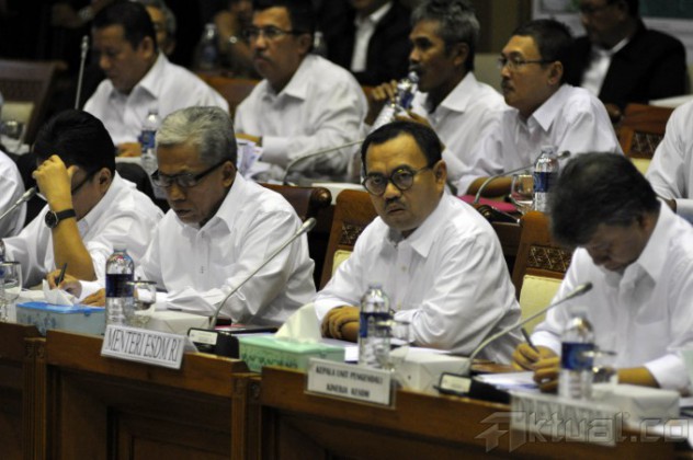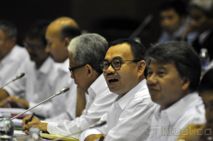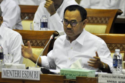 Menteri Energi dan Sumber Daya Mineral (ESDM) Sudirman Said saat memberikan paparan pada rapat kerja Menteri ESDM dengan Komisi VII DPR RI di Ruang rapat Komisi VII, Komplek Parlemen, Senayan, Jakarta, Senin (26/1/2015). Rapat tersebut dengan agenda evaluasi kinerja tahun 2014 dan persiapa pelaksanaan program tahun 2015. AKTUAL/JUNAIDI MAHBUB