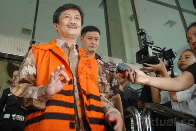 Mantan Kepala Satuan Kerja Khusus Pelaksana Kegiatan Usaha Hulu Minyak dan Gas (SKK Migas), Rudi Rubiandini, tersenyum usai menjalani pemeriksaan di gedung Komisi Pemberantasan Korupsi (KPK). Jakarta, Jumat (29/11/2013). Rudi menyalahgunakan jabatannya di SKK Migas untuk memengaruhi lelang terbatas minyak mentah dan kondensat Senipah bagian negara. Juga menyetujui Fossus Energy Ltd sebagai pemenang lelang terbatas Kondensat Senipah Bagian Negara pada 7 Juni 2013 untuk periode bulan berikutnya, dan menyetujui kargo pengganti minyak mentah Grissik Mix Bagian Negara untuk Fossus Energy Ltd periode Februari-Juli 2013. Aktual/Tino Oktaviano
