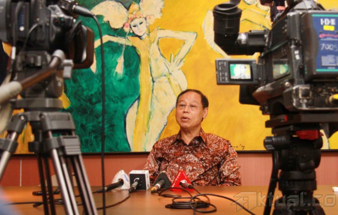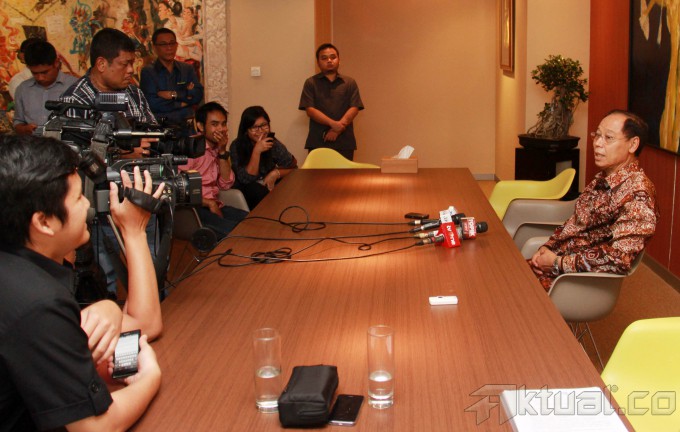Wakil Dewan Pakar Partai Persatuan Pembangunan (PPP), Djan Faridz, menjawab pertanyaan seputar kedatangan Ketua PPP Suryadharma Ali, saat acara kampanye terbuka partai Gerindra di Jakarta, Selasa (25/3/2014). Djan Faridz mengungkapkan PPP membuka seluruh kemungkinan termasuk membangun kerja sama politik dengan Gerindra, namun kedatangannya itu dalam rangka silaturahmi dan persahabatan antar partai. Aktual/Tino Oktaviano