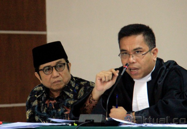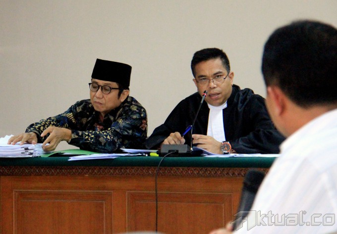 Kepala Biro Hukum dan Humas Kementrian ESDM Susyanto saat memberikan kesaksiannya dalam sidang lanjutan Waryono Karno di Pengadilan Tindak Pidana Korupsi (Tipikor), Jakarta, Kamis (11/6/2015). Mantan Sekjen ESDM Waryono Karno terlibat atas dugaan korupsi Satuan Kerja Khusus Pelaksana Kegiatan Usaha Hulu Minyak dan Gas Bumi (SKK Migas) di Kementeri Energi dan Sumber Daya Mineral (ESDM). AKTUAL/MUNZIR