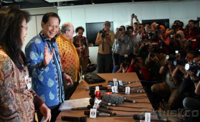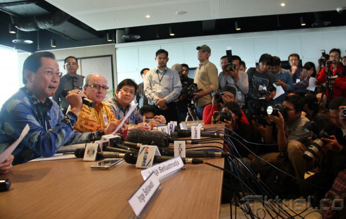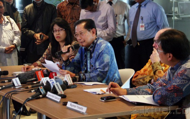Presiden Direktur PT Bank Central Asia Tbk (BBCA), Jahja Setiaatmadja didampingi para direksi menyampaikan informasi kasus perpajakan yang terjadi pada tahun 1999 di kantor BBCA, Jakarta, Selasa (22/4/2014). Kronologis perpajakan BCA untuk tahun fiskal 1998, BCA mengalami kerugian fiskal sebesar Rp29,2 triliun yang merupakan akibat dari krisis ekonomi. Berdasarkan UU yang berlaku, maka kerugian dimaksud dapat dikompensasikan dengan penghasilan (tax loss carry forward) mulai tahun pajak berikutnya berturut-turut sampai dengan lima tahun. Selanjutnya, pada 1999 BCA sudah mulai membukukan laba fiskal pada 1999 sebesar Rp174 miliar. Namun, pada 2002, Ditjen Pajak telah melakukan koreksi laba fiskal periode 1999 menjadi Rp 6,78 triliun. Di dalam nilai tersebut terdapat koreksi yang terkait dengan transaksi pengalihan aset termasuk jaminan sebesar Rp5,77 triliun yang dilakukan dengan proses jual beli dengan BPPN yang tertuang dalam perjanjian jual beli dan penyerahan piutang. Aktual/Aktual/Tino Oktaviano