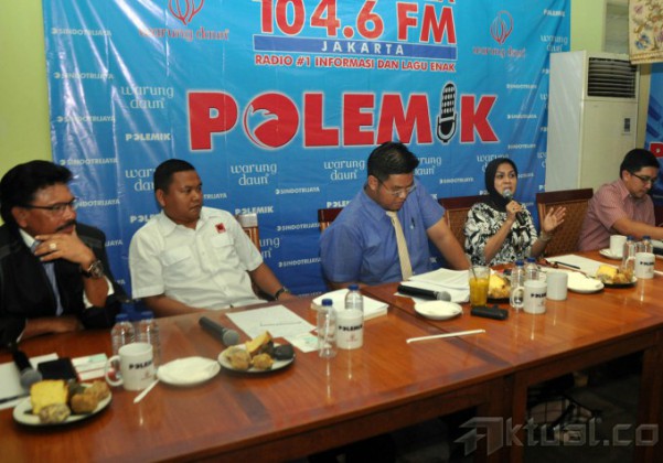 dari kiri :  Wakil Ketua Fraksi Partai Nasdem Jhonny G Plate, Ketua DPP Projo Sunggul Hamonangan Sirait, Pakar Psikologi UI Dewi Haroen, Pengamat Politik CSIS Phillips Vermonte menjadi nara sumber pada acara diskusi di Warung Daun, Jakarta, Sabtu (11/4/2015). Diskusi ini membahas kongres PDIP dan kepemimpinan Presiden Joko Widodo dengan tema “Penumpang Gelap di Tikungan”. AKTUAL/JUNAIDI MAHBUB