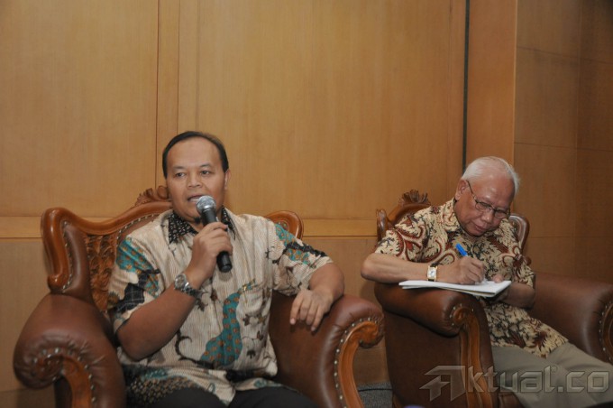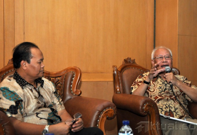 Wakil MPR RI, Hidayat Nur Wahid (kiri) dan Ketua Dewan Pers, Bagir Manan saat menjadi pembicara dalam acara dialog pilar negara di Perpustakaan MPR RI, Nusantara IV, Senayan Jakarta, Senin (16/3/2015). Dilog tersebut dengan mengangkat tema “Membangun Komunikasi Politik Kebangsaan” AKTUAL/JUNAIDI MAHBUB