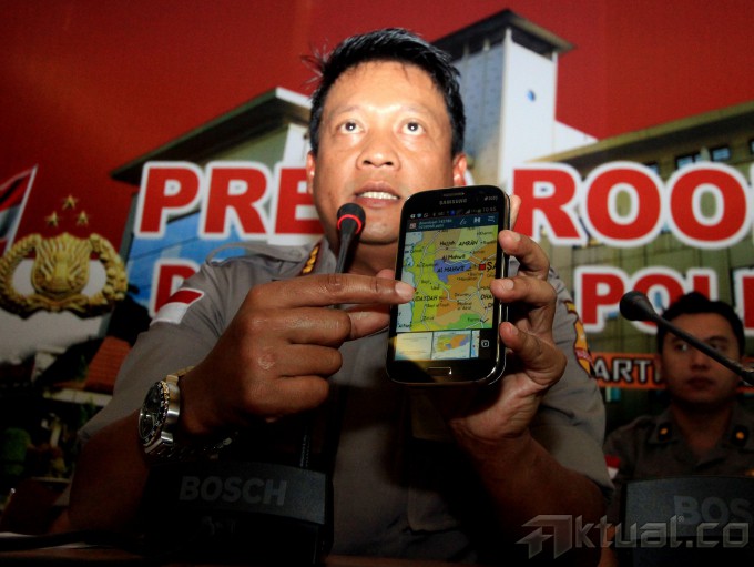 Ketua Tim Satgas Penyelematan Evakuasi Warga Negara Indonesia (WNI) Krina Murti saat menunjukan peta dimana titik evakuasi WNI yang berada di Yaman, Jakarta, Rabu (1/4/2015). Mabes Polri menyiapkan 7 Satgas anggota Polri untuk melakukan evakuasi WNI yang berada di Yaman. Para anggota Polri ini akan bergabung dengan Tim Kemenlu untuk melakukan evakuasi WNI di Yaman. AKTUAL/MUNZIR