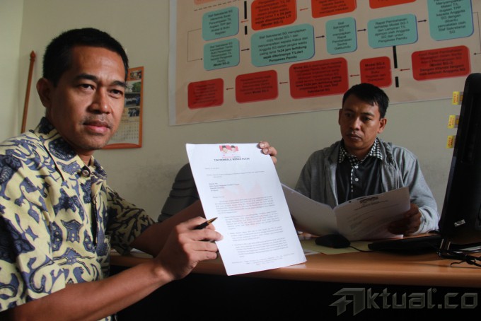 Kuasa Hukum Tim Pembela Merah Putih Sahroni,SH, saat memberikan berkas laporan ke Bawaslu, Jakarta, Kamis, (31/7/2014). Laporan tersebut terkait surat edaran KPU kepada setiap KPU daerah untuk membuka kotak-kotak suara yang masih tersegel. Aktual/Tino Oktaviano
