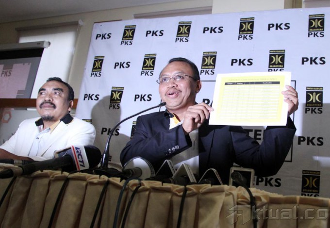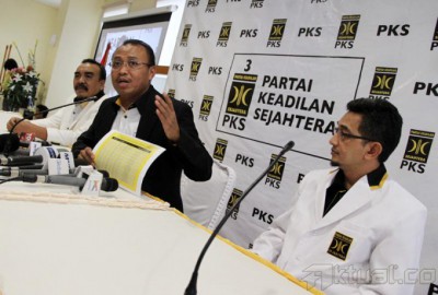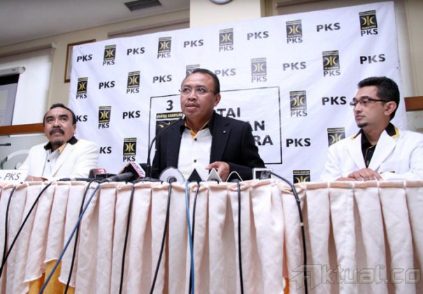 Sekretaris Jenderal PKS Ketua Panitia Pemilihan Raya (Pemira) Toufik Ridho (tengah) didampingi Majelis Pertimbangan PKS Arifin (kiri) dan Wasekjen PKS Budi Hermawan (kanan), memberikan keterangan pers mengenai pengumuman hasil Pemira PKS di DPP PKS, Jakarta, Minggu (29/12/2013). Hasil suara nasional Pemira Capres PKS menempatkan Ketua Fraksi PKS Hidayat Nur Wahid menduduki peringkat pertama dengan perhitungan suara 18.34% disusul dengan Presiden PKS Anis Matta dengan 17.46% dan Gubernur Jawa Barat Ahmad Heryawan dengan 16.69%. Aktual/Tino Oktaviano
