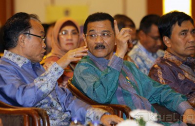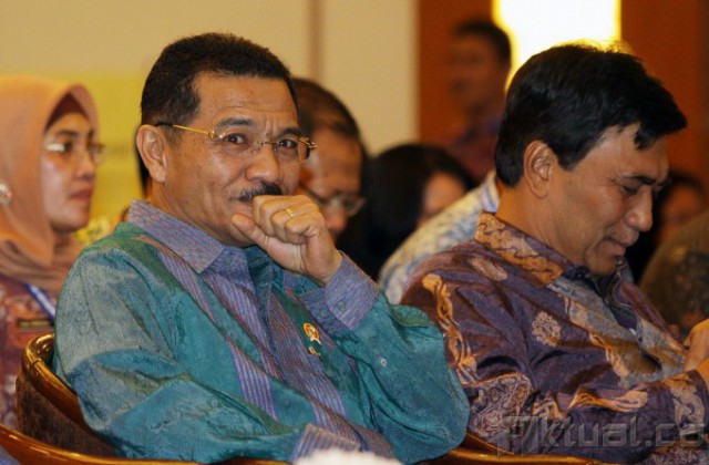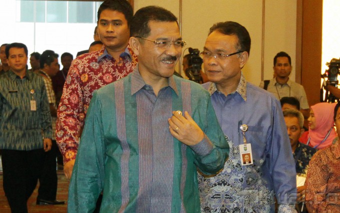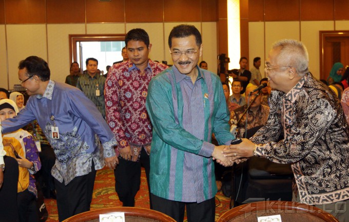 Menteri Dalam Negeri Gamawan Fauzi, saat akan membuka Seminar Nasional Hari Otonomi Daerah XVIII di Jakarta, Kamis (24/4/2014). Dalam kesempatan tersebut Gamawan mempertanyakan jumlah kerugian negara sebesar Rp 1,12 triliun yang menurut Komisi Pemberantasan Korupsi sebagai akibat dugaan kasus korupsi pengadaan kartu tanda penduduk berbasis elektronik. Dan akan meminta bantuan KPK dan Badan Pengawasan Keuangan dan Pembangunan (BPKP) untuk memeriksa prosedur pelelangan sebelum dia menandatangani pemenang tender proyek pengadaan e-KTP tersebut. Aktual/Tino Oktaviano