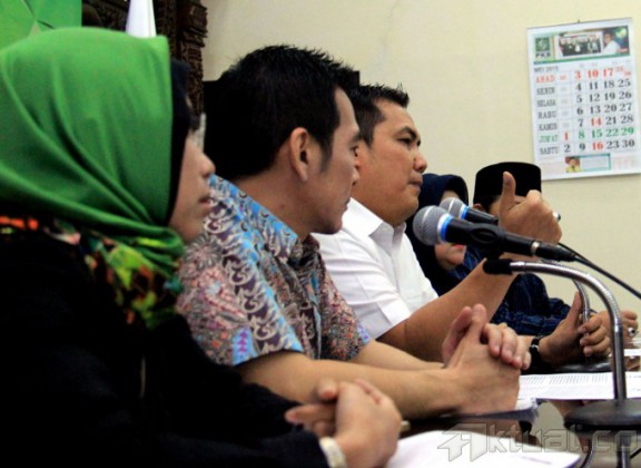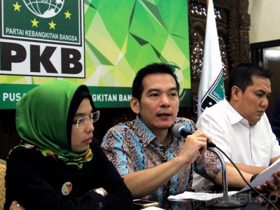 Dari kiri ke kanan, Kapoksi Kom VI Neng Eem Marhamah, Wasekjen DPP PKB Daniel Johan, Ketua Fraksi DPR PKB Helmy Faesal, Kapoksi Kom III Rohani, Anggota Komisi IV Acep Adang Ruchiyat, saat jumpa pers terkait beredarnya beras plastik di DPP PKB, Jalan Raden Saleh, Jakarta Pusat, Minggu (24/5/2015). DPP PKB meminta meminta empat Kapoksi FPKB untuk mendorong DPR segera membentuk Pansus Beras Palsu/Plastik. AKTUAL/MUNZIR
