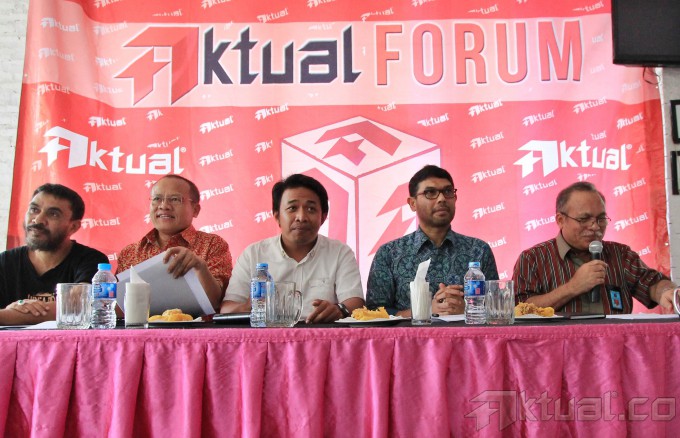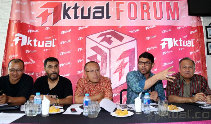 Dari kiri ke kanan, Koordinator Divisi Monitoring Hukum dan Peradilan ICW Emerson Yuntho, Penggagas Indonesia Prison Studies Ahmad Taufik, Ketua Dewan Etik Peradi Sugeng Teguh Santoso, Anggota Komisi III DPR Nasir Djamil dan Staf Ahli Menteri Bidang Pelanggaran HAM Kementerian Hukum dan HAM Ma’mun saat diskusi Aktual Forum dengan tema “Remisi dalam Perspektif Penegakan Hukum, HAM dan Pemberantasan Korupsi” di Resto Warung Komando, Jakarta, Minggu (29/3/2015). Diskusi ini menyoroti wacana Menteri Hukum dan HAM, Yasonna Laoly untuk melakukan perubahan terhadap peraturan pemerintah (PP) Nomor 99 Tahun 2012, tentang perubahan atas PP Nomor 32 Tahun 1999 tentang syarat dan tata cara pelaksanaan hak warga binaan pemasyarakatan terus menuai pro kontra, baik dikalangan akademisi maupun politisi. AKTUAL/MUNZIR