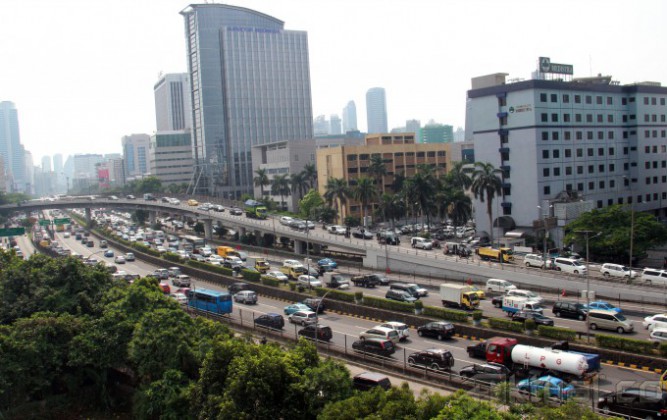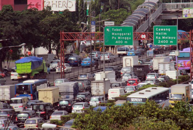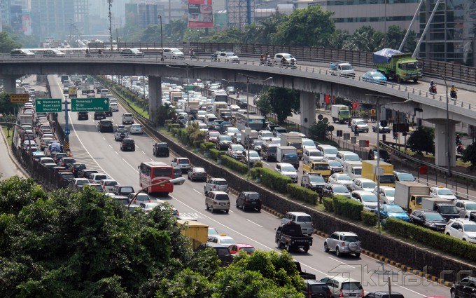Kendaraan bermotor memadati ruas jalan Tol dan jalan regular di Jalan Gatot Subroto, Jakarta, Kamis (17/7/2014). Para pemangku kebijakan diminta menurunkan ego antar instansi guna memecahkan permalasahan kemacetan di Ibu Kota yang kian kronis. Adanya sikap ego sektroal dituding menjadi penghambat mencari solusi mengatasi kesemrawutan di jalan. Namun sayangnya sinergi antar instansi seolah berjalan masing-masing. Aktual/Tino Oktaviano