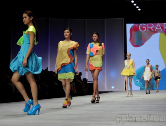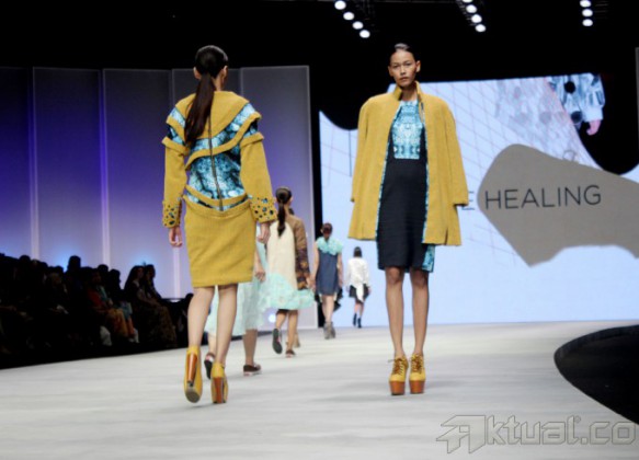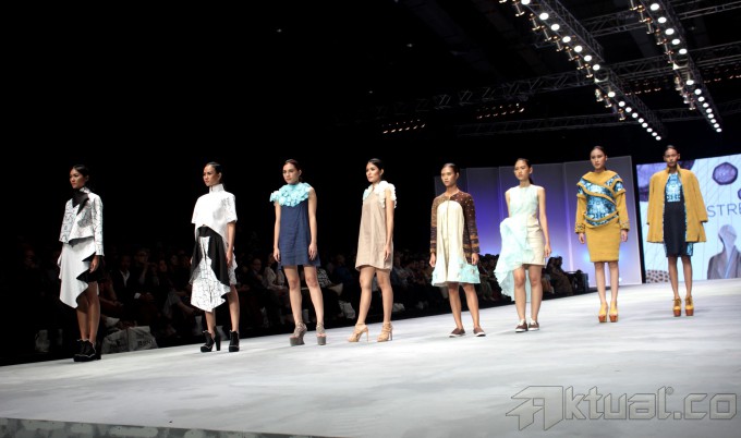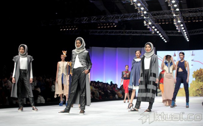 Model berjalan di “catwalk” dalam pembukaan Indonesia Fashion Week (IFW) 2015 di Balai Sidang Jakarta, Jakarta, Kamis (26/2/2015). IFW 2015 menghadirkan 747 brand lokal, 230 desainer, 2.552 fashion outfit dan 32 pagelaran busana dan akan berlangsung hingga Minggu (1/3/2015). AKTUAL/VINA FATMA SARI