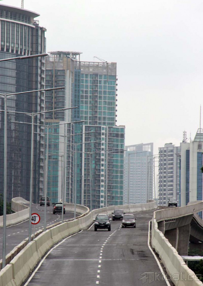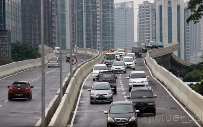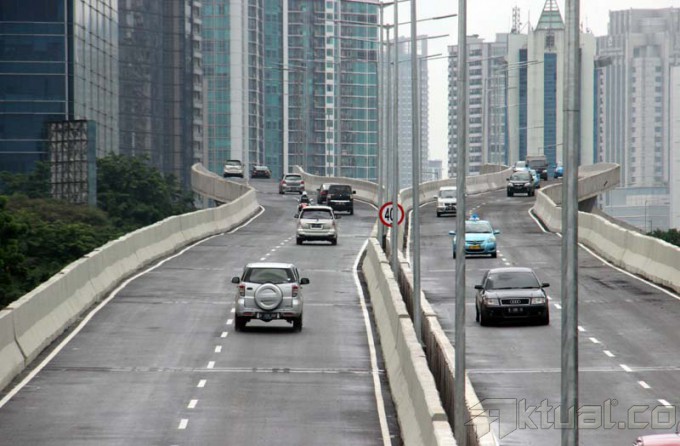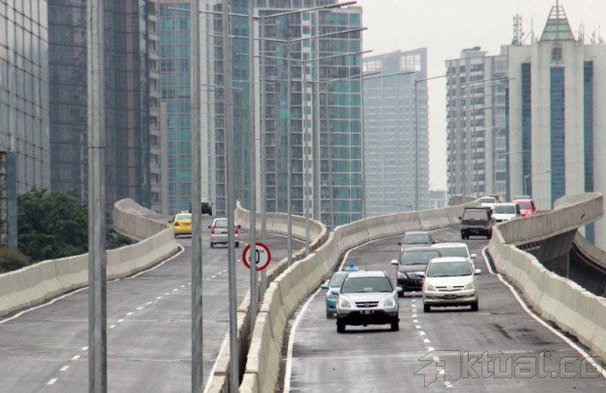 Sejumlah kendaraan melintas Jalan Layang Non Tol (JLNT) di kawasan Jalan Casablanka, Jakarta, Senin (30/12/2013). JLNT ini diharapkan dapat mengurangi kemacetan Ibu Kota hingga 40 persen, di kawasan jalan casablanka hingga Jalan DR Satrio. Aktual/Tino Oktaviano
