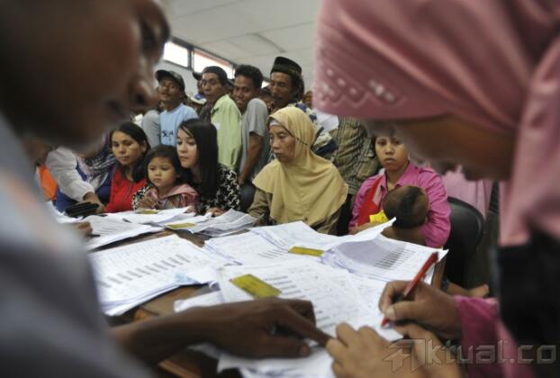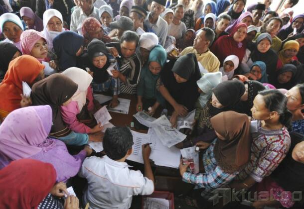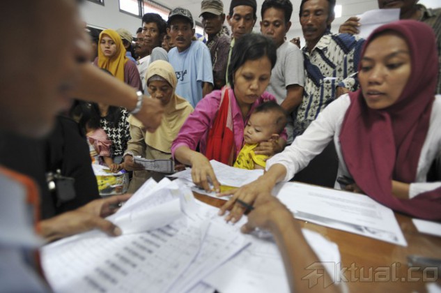 Warga tengah mengantre ketika hendak mencairkan dana Program Simpanan Keluarga Sejahtera (PSKS) di Kantor Pos Indonesia, Jalan Baru, Bogor, Senin (24/11/2014). Warga pemilik Kartu Perlindungan sosial (KPS) berhak menerima bantuan langsung tunai (BLT) sebesar Rp 400 ribu untuk bulan November dan Desember sebagai bagian dari kompensasi atas kenaikan harga Bahan Bakar Minyak (BBM). AKTUAL/IST