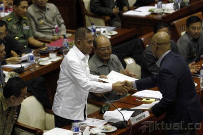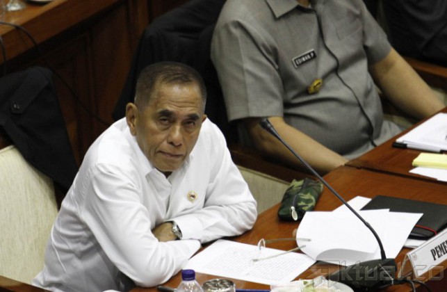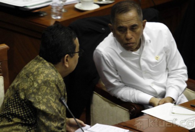 Menteri Pertahanan Ryamizard Ryacudu (kiri) mengikuti rapat kerja dengan Komisi I DPR-RI di Jakarta, Kamis (5/2). Rapat tersebut membahas pengambilan keputusan terhadap Rancangan Undang-Undang (RUU) pengesahan persetujuan antara Pemerintah RI dengan Pemerintah Demokratik Timor Leste dan Republik Islam Pakistan mengenai aktivitas kerja sama di bidang pertahanan. AKTUAL/JUNAIDI MAHBUB