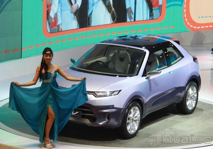 Seorang model memperkenalkan mobil concept Daihatsu di Pameran Indonesia International Motor Show (IIMS), JIExpo, Kemayoran Jakarta, Senin (23/9/2013). Sejumlah Agen Tunggal Pemegang Merk (ATPM) menampilakn beberapa mobil concept yang dipamerkan untuk memeriahkan ajang IIMS 2013. Aktual/Tino Oktaviano