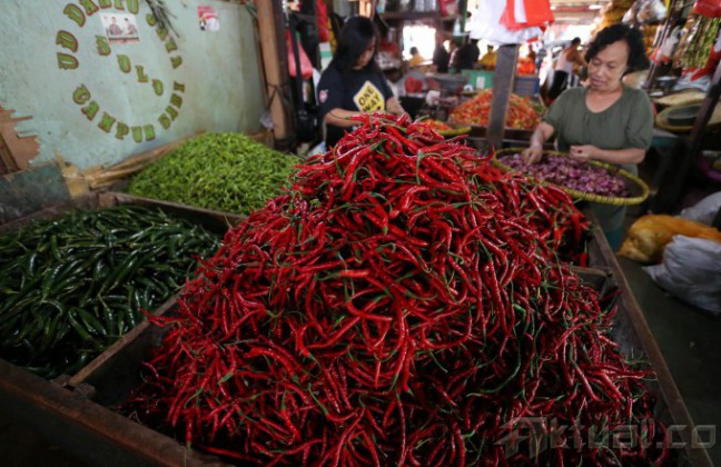 Seorang pedagang menyortir cabe merah di pasar tradisional Senen, Jakarta Pusat, Rabu (16/7/2014). Menteri Perdagangan Muhammad Lutfi mengatakan kenaikan 5-10 persen harga bahan kebutuhan pokok sepekan sebelum Hari Raya Idul Fitri dinilai wajar. Kenaikan itu menjadi kompensasi keuntungan yang diterima petani dan pedagang sepertihalnya Tunjangan Hari Raya (THR). Aktual/Tino Oktaviano