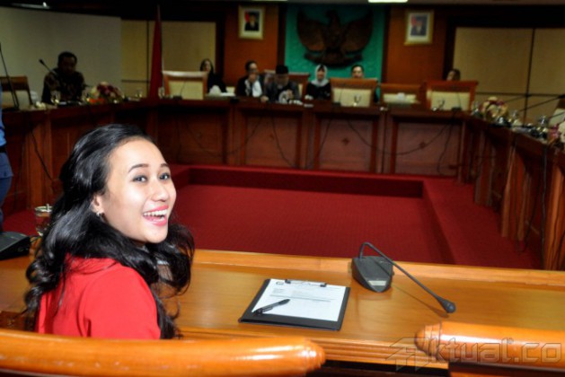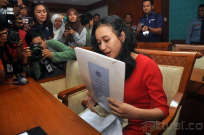 Mantan Staf Anggota DPR dari Fraksi Hanura Frans Agung Mula Putra Natamenggala, Denty Noviany Sari mendatangi DPR untuk melapor ke Mahkamah Kehormatan Dewan (MKD) terkait dugaan Ijazah Palsu di Kompleks Parlemen senayan, Jakarta Selatan, Kamis (28/5/2015). Denty berang karena pemecatan dirinya yang semena-mena sehingga dirinya melaporkan dugaan penggunaan ijazah palsu bergelar Doktor kepada Mahkamah Kehormatan Dewan (MKD) DPR. AKTUAL/JUNAIDI MAHBUB
