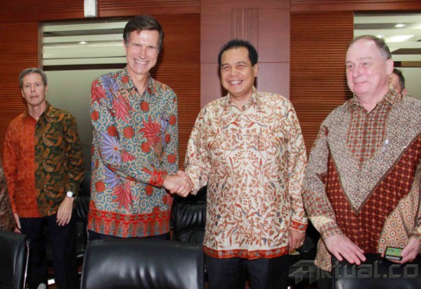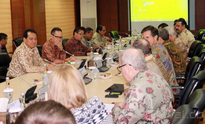 Menteri Perekonomian Chairul Tanjung, menerima kunjungan Duta Besar Amerika Serikat Robert Blake yang didampingi ketua Kadin Amerika Serikat, di kantor Kementerian Perekonomian, Jakarta, Kamis (19/6/2014). Pertemuan tersebut membahas seputar kerjasama di bidang ekonomi dan mendorong hubungan antar masyarakat atau people to people contact. Aktual/Tino Oktaviano