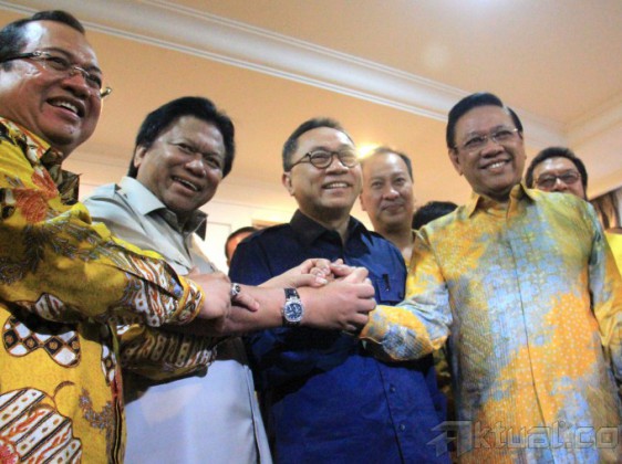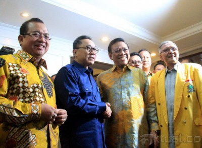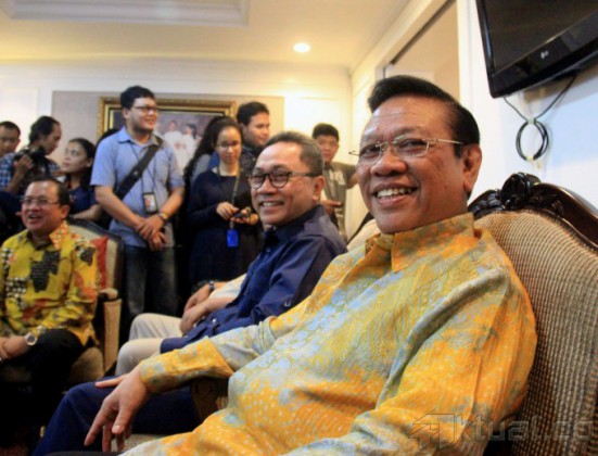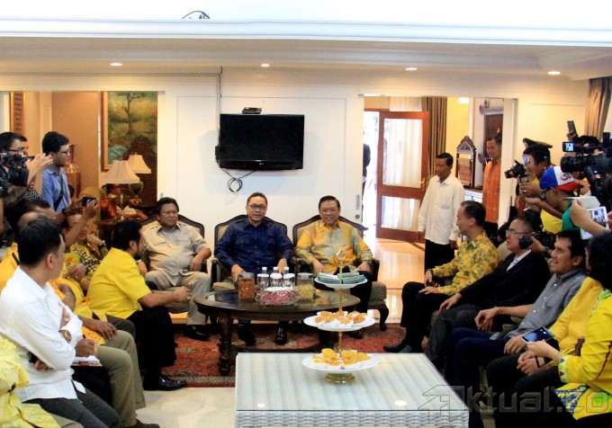 Ketua MPR yang juga Ketua Umum PAN Zulkifli Hasan saat menerima Ketua Umum Golkar versi Munas Ancol Agung Laksono di rumah dinas ‎Ketua MPR, Jakarta, Kamis (12/3/2015). Rangkaian kunjungan ke pimpinan partai politik, baik Koalisi Indonesia Hebat maupun Koalisi Merah Putih, merupakan roadshow Golkar Agung yang dilakukan dalam rangka menjalin silaturahmi sekaligus memperkenalkan orang-orangnya sebagai pengurus baru Golkar yang sah. AKTUAL/MUNZIR