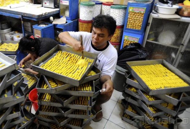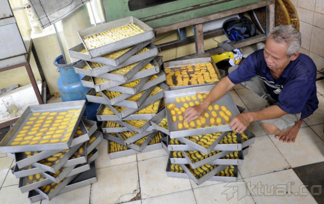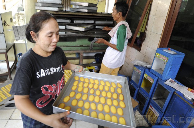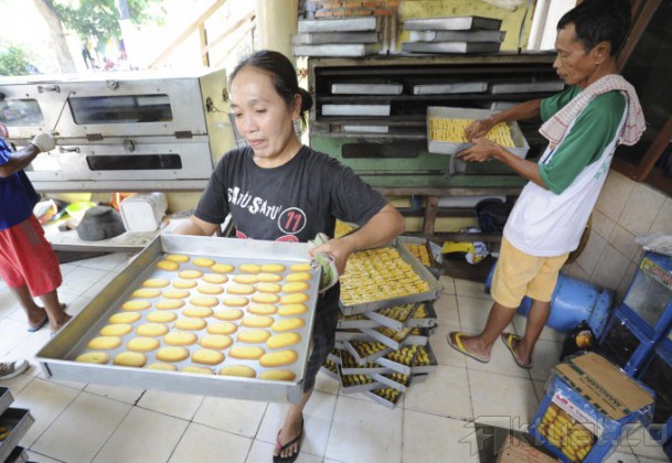 Sejumlah pekerja sibuk membuat kue kering di sebuah industri rumahan di Kwitang, Jakarta, Selasa (15/7/2014). Dua pekan jelang Lebaran, pembuat kue kering mengeluhkan turunnya omzet penjualan hingga 25 persen dibandingkan tahun lalu. Aktual/Tino Oktaviano