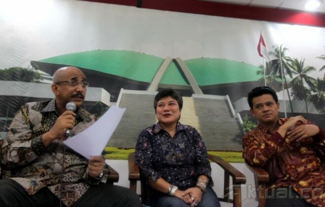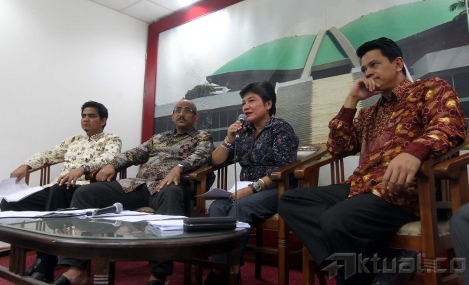 Dari kiri ke kanan, Anggota Komisi IX DPR fraksi PKS Indra, Anggota DPR fraksi Hanura Jamal Aziz, Ketua Komisi IX DPR fraksi PDIP Ribka Tjibtaning dan Anggota Komisi IX DPR fraksi Golkar Poempida Hidayatulloh saat jumpa pers terkait tenaga alih daya atau outsourcing di Gedung Parlemen, Jakarta, Jumat (25/10/2013). Komisi IX DPR RI memberikan rekomendasi kepada Menteri BUMN Dahlan Iskan untuk menghapus outsoucing di perusahaan milik BUMN. Aktual/Tino Oktaviano